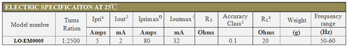 Note: 1.Output voltage is proportional to the derivative(di/dt)of the input current based on the Rogowski Coil principle.