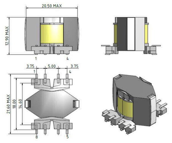 SMD RM6 4+4 Switching transformer normally used for DC-DC,AC-DC converters ,low profile and high