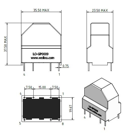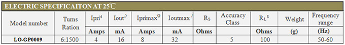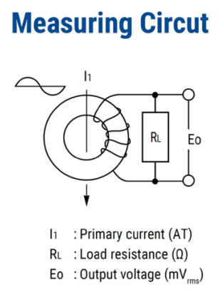 Note: 1.Output voltage is proportional to the derivative(di/dt)of the input current based on the Rogowski Coil principle.