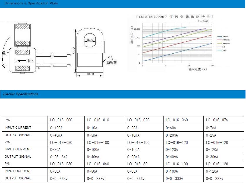 Top right curve plot shows the current transformers’ output characteristics under different load conditions,100Ω Max for load resistor is suggested. Middle right curve plot shows the current transformers’ output characteristics at very low current value. It can be seen from the plots that CT has excellent output performance when current is above 0.1A.