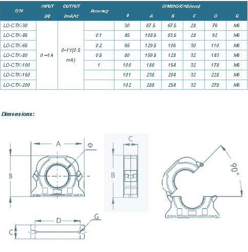 + Center through hole(split core)current transformers