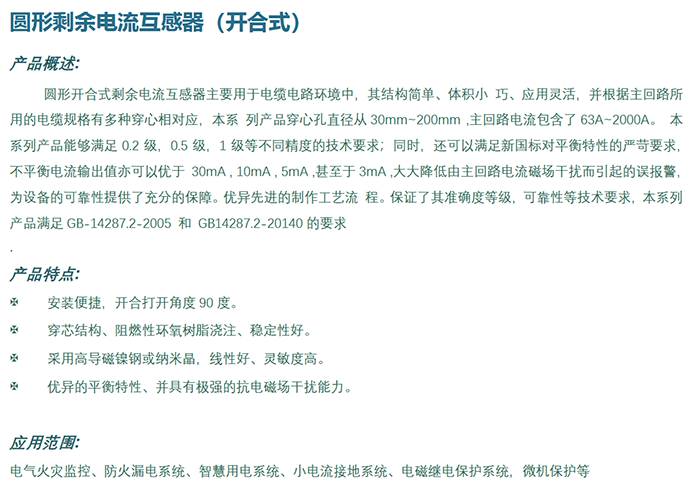 -- 开合一体式圆形剩余电流互感器